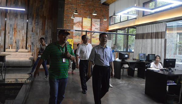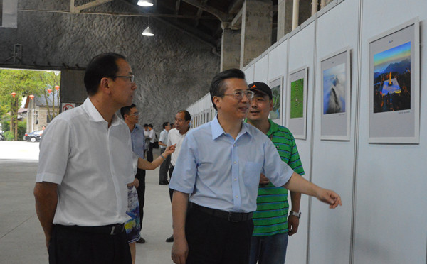 考察中,王永康實地參觀走訪了幸福谷品牌管理公司、創客空間等入園企業,并饒有興趣的觀看了正在文創園8號樓舉辦的“‘2016?航拍麗水’百幅攝影作品展”。看到一幅幅既熟悉又倍感新鮮的攝影作品,王永康異常高興,還不時的和市委書記史濟錫進行交流。