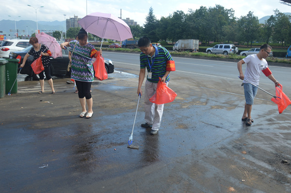 8月11日,是長運公司進行“路段包干”巡查的第一天,一大早,長運公司巡查小組人員就佩帶“文明勸導員”袖套,拿著垃圾鉗和垃圾袋到包干路段進行巡查。大家一邊撿沿路的垃圾,一邊勸導商戶們做好門前三包工作,對一些不文明出行方式進行勸導、制止,做好巡查記錄,拍照留檔。