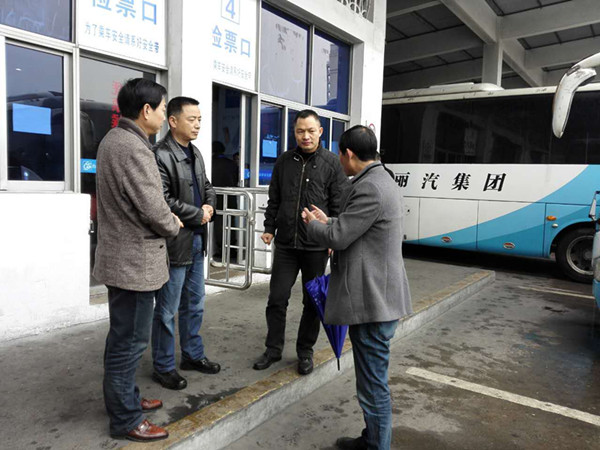 今天(1月25日)上午,市交通運輸局副局長葉麗東、副局長、運管局局長蔣仲勝在客運東站經理江小華的陪同下到東站檢查春運期間的安保工作 。