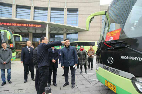 當看到所有車輛都是統一的淺綠色,象征“綠水青山就是金山銀山”,每輛車前醒目的位置都放置著統一規格的黨代會制定用車紅牌子,車容整潔;所有駕駛員都統一穿著麗汽集團司服,司乘人員精神飽滿時,史書記大加贊賞,對車輛的準備工作非常滿意。并走進車里,和司機師傅們進行了親切的交談,勉勵大家認真細致為本次黨代會用車做好服務工作。