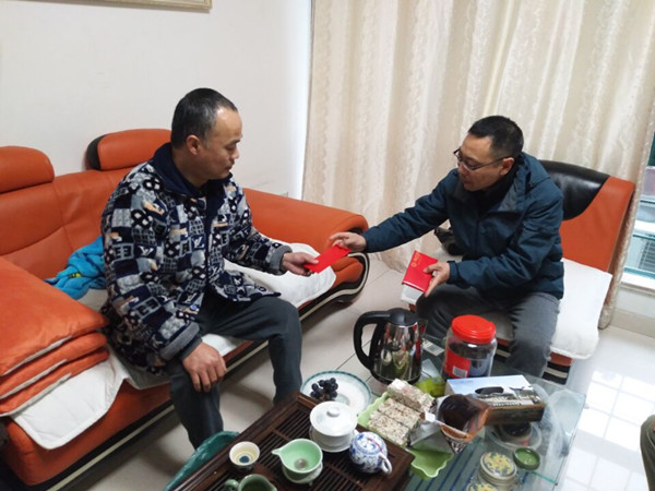 “我們?nèi)腋兄x公司領(lǐng)導和同事們的幫助”,3月24日,當葉榮明接過工會主席王斌遞過來的捐款時哽咽著說。