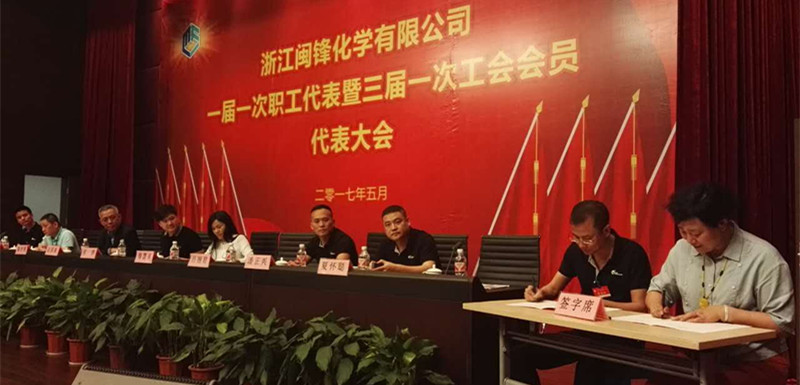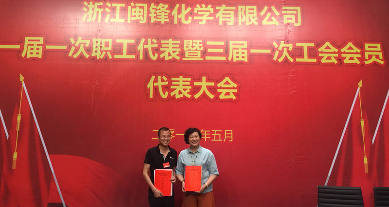 5月2日下午,麗汽集團工會與浙江閩鋒化學有限公司工會“友好共建協議”簽訂儀式在閩鋒化學有限公司職代會上隆重舉行,閩鋒化學有限公司一百余名職工代表共同見證了簽約儀式。