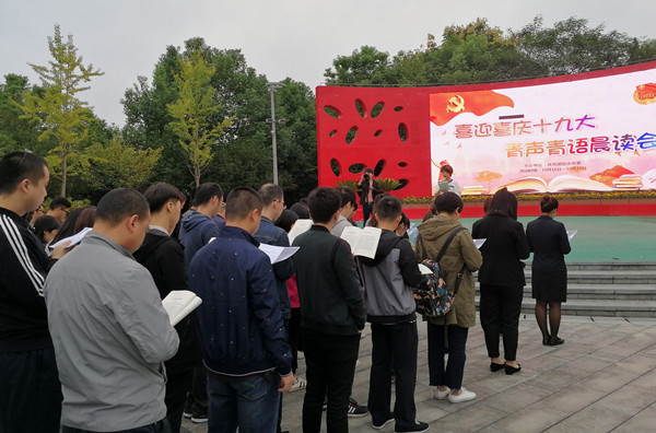 為慶祝中國共產(chǎn)黨第十九次全國代表大會的召開,深入學(xué)習(xí)習(xí)近平總書記系列講話精神和關(guān)于青少年工作、共青團工作的論述,團市委在市直各行業(yè)系統(tǒng)團員青年中開展“喜迎十九大,青聲青語晨讀會”系列活動。10月19日早上,集團公司團委組織30名團員青年來到青少年宮廣場,集體高聲誦讀習(xí)近平總書記講話摘要,活動的開展,激發(fā)了廣大團員青年愛黨、愛國、愛家的情懷。