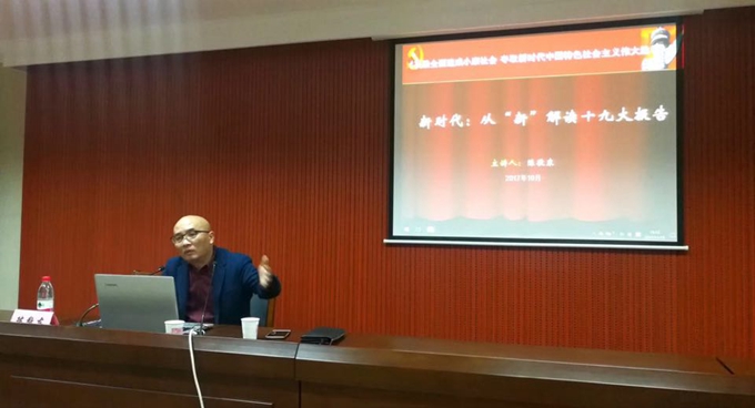 主講教授陳敬東為參會黨員干部獻上了一堂精彩的講座--《新時代:從“新”解讀十九大報告》。講座從“我們走到哪里”、“新時代新使命”、“新時代新引領”、“新時代新目標”、“新時代新任務”五個方面對十九大報告進行了新穎地解讀,對企業(yè)找準新時代的自身新定位、以新思想引領企業(yè)未來新發(fā)展有著很好的啟迪作用和借鑒意義。