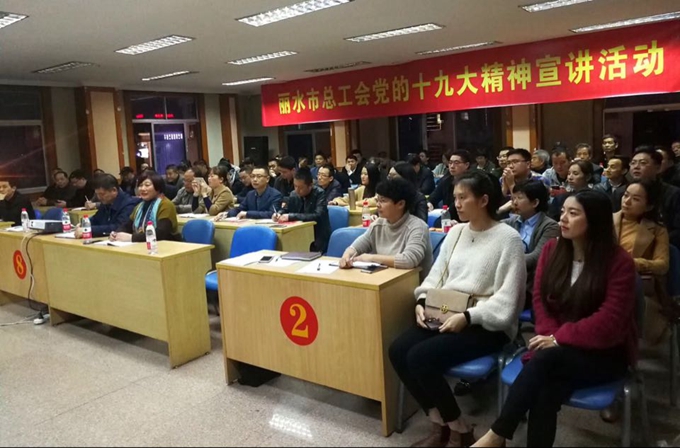 2017年11月15日晚,麗汽集團在旅游集散中心5樓會議室舉行十九大精神報告會。報告會由市總工會邀請麗水市委黨校教研室主任、市情研究中心主任、副教授陳敬東主講,麗汽集團黨委書記、董事長葉茂主持會議。公司黨委班子成員、各黨(總)支部委員、中層以上管理人員80余人參加報告會學習。