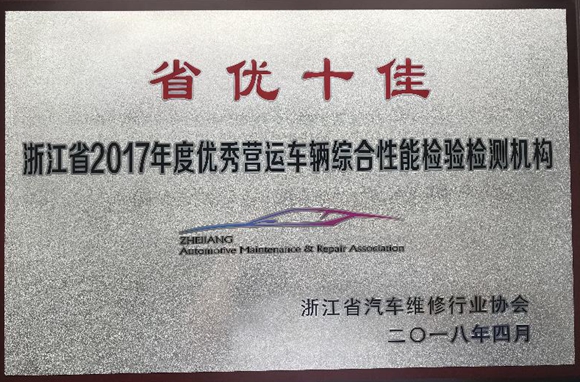 暨浙江省2017年度優秀營運車輛綜合性能檢驗檢測機構