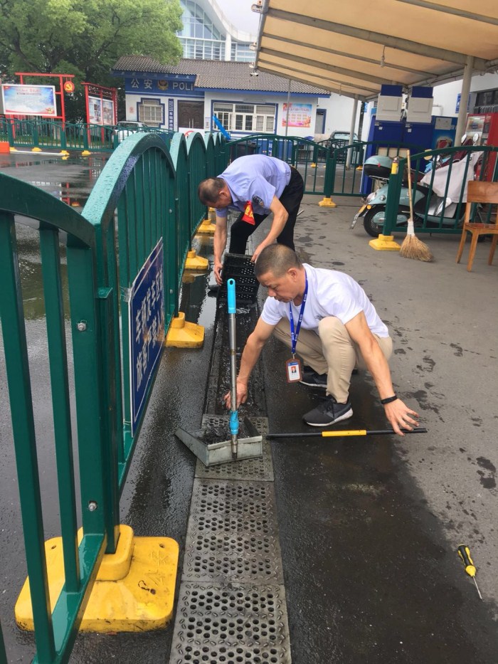 冒著綿綿細雨,東站員工對站場內、站前廣場及高鐵配載站排水溝的垃圾進行清理,重點清理了容易造成堵塞的溝坑轉角處。活動現場,大家拿起掃帚、鐵夾等,打掃衛生死角;用雙手掀開排水溝蓋板,清除溝里淤泥。經過近兩小時的辛勤勞動,站場內外的水溝全部得到清理,排除了雨季來臨因排水溝不暢留下的隱患。