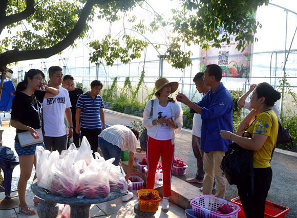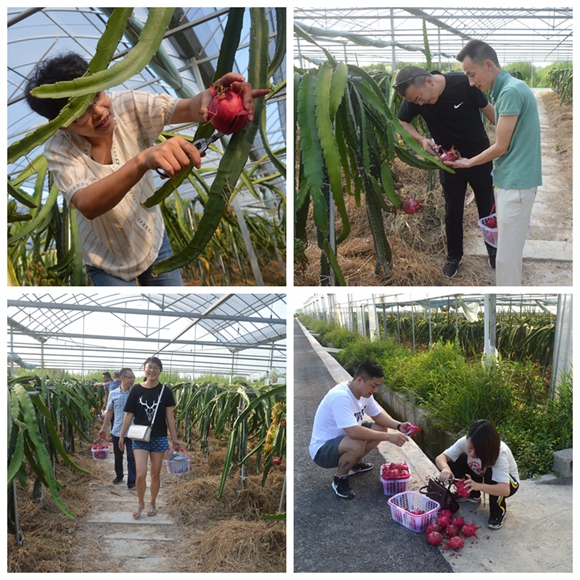 在缸窯村火龍果采摘基地,工作人員向大家介紹了基地火龍果的無公害種植模式和火龍果果肉、果皮以及花朵的食用價(jià)值。工會主席(組長)們也親自體驗(yàn)了一把火龍果的采摘。看著枝頭紅艷誘人的果實(shí),大家臉上掛滿了的豐收喜悅。