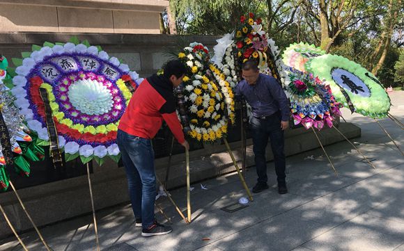 烈士墓前,麗汽集團黨委書記葉茂、團委書記陳躍飛共同敬獻(xiàn)了鮮花。隨后,全體黨團員面向革命先烈進(jìn)行了默哀。