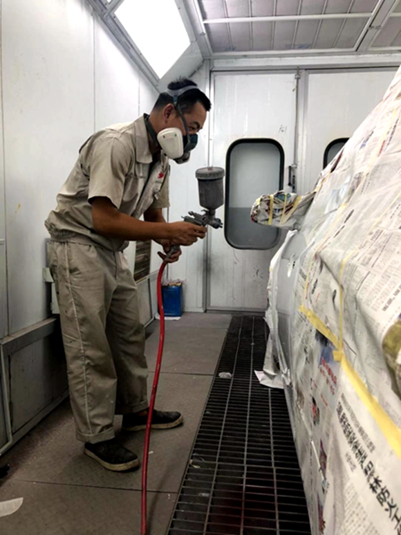 【油漆工】油漆工師傅主要從事汽車受損部位油漆修復(fù)還原,整天圍繞著油漆原料、香蕉水、烤房,工作環(huán)境十分艱苦,因為噴漆施工時需要無塵環(huán)境,所以烤漆房內(nèi)沒有電風(fēng)扇。