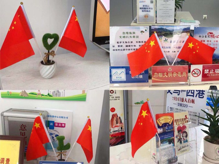 “十一”佳節臨近,旅游集散門市中心為營造節日喜慶氣氛,換燈籠、貼窗花,在門市大廳插上國旗。同時召開部門工作會議,對“國慶”安全生產、維穩安保工作進行了具體的分工部署。