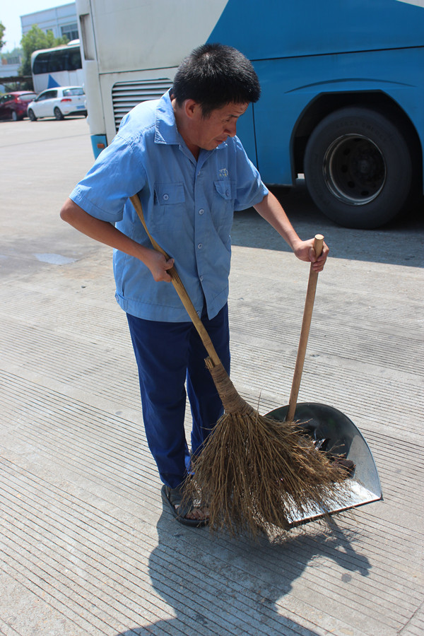 “中午時間這么熱,受得了嗎?” 他笑笑回答道:“熱是熱,既然來上班,工作總是要認(rèn)真的做好。” 站場發(fā)車區(qū)以及通道衛(wèi)生都是宓建文今天當(dāng)班的清掃范圍,他頂著烈日掃上一圈至少要半個小時,每次掃完在下客區(qū)稍坐片刻,喝上一口水,又提著簸箕和掃把開始新一輪的清掃。他說:“要是時間間隔再長些,垃圾就會多,特別是發(fā)車區(qū)前是旅客檢票上車的必經(jīng)之路,不清掃勤些,有損車站整潔衛(wèi)生的形象。”