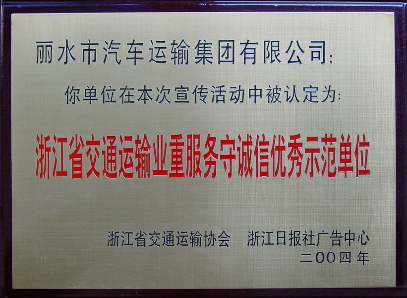 2004年浙江省交通運輸業重服務守誠信優秀示范單位