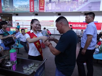這幾天,麗水最高氣溫持續在39-40攝氏度之間,炎熱的太陽悶得讓人透不過氣。為做好防暑降溫工作,東站黨政領導結合實際,決定推出一項溫馨服務:免費為旅客送涼茶。選用茶葉、白菊花、金銀花等原料精心泡制清涼解暑的涼茶,組織服務人員在東站候車室免費提供給來往的旅客和司乘人員,將絲絲涼意送到每一位出行旅客的心坎上。