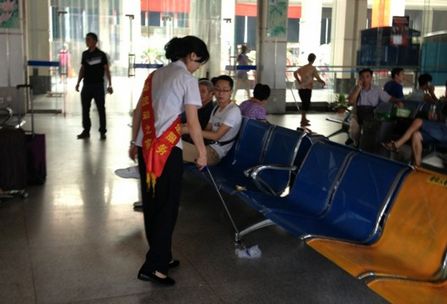 踏進(jìn)站前廣場(chǎng),你會(huì)看見(jiàn)保潔員拿著掃把、簸箕不停的巡視,及時(shí)的清理;買(mǎi)票時(shí),你會(huì)時(shí)不時(shí)看見(jiàn)保衛(wèi)稽查人員拿著長(zhǎng)柄鑷子在清理;候車(chē)時(shí),推著服務(wù)車(chē)的西站服務(wù)班工作人員在為旅客提供服務(wù)的同時(shí)也拿著長(zhǎng)柄鑷子清理地上的垃圾;上車(chē)時(shí),你還會(huì)在發(fā)車(chē)區(qū)看見(jiàn)檢票員跟調(diào)度員在發(fā)車(chē)間隙拿著長(zhǎng)柄鑷子及時(shí)清理正在上車(chē)的旅客丟下的垃圾。不遠(yuǎn)處的場(chǎng)地上,是拿著鑷子和垃圾袋的值班站長(zhǎng)的身影。
