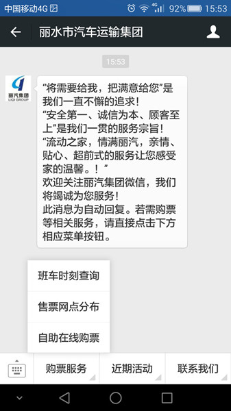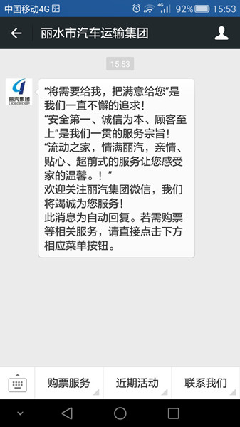 假期將至,為滿足旅客多樣化的購票需求,現旅客只需關注“麗汽集團”微信公眾號,就能實現通過手機終端直接購買從東、西汽車站始發班線的車票,還可以退票。