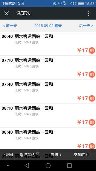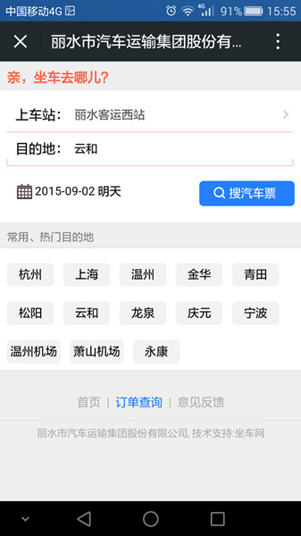 (3)點擊“購票”,進入購買服務頁面,在上車站位置選擇“麗水客運東站”或“麗水客運西站”。