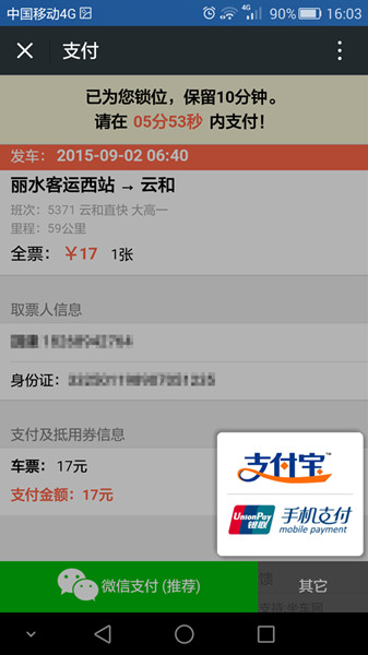 (5)旅客購票后最遲發車前10分鐘憑身份證或取票密碼到自助售票機取票。