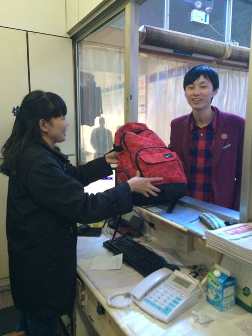 “您好,這里是客運(yùn)東站服務(wù)處,您落在車上的背包我們已經(jīng)幫您找到了,請(qǐng)您有空的時(shí)候過(guò)來(lái)取?!狈?wù) 組組員李一斌平靜中帶點(diǎn)興奮地說(shuō)。