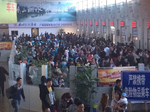 從中午11點起,客運東西兩站售票窗口就排起了長隊,候車大廳座無虛席,檢票口和通道處被圍的水泄不通。