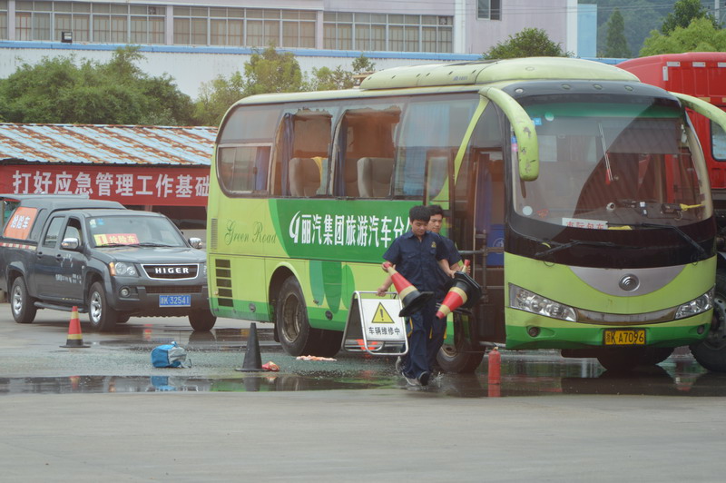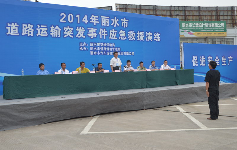 整個演練由市交通局黨組副書記、副局長李根林任總指揮,市交通局副調研員葉彪、市運管局副局長金昌平任副總指揮,麗汽集團常務副總經理何赤詮任現場總指揮。演練共調集各類車輛近20臺,80余人參與了演練。麗水市公安局副局長、麗水市交警支隊支隊長陳志斌,麗水市政府應急辦主任尹耀新,麗水市消防支隊副支隊長鄭志堅,麗水市安全生產監督管理局應急處處長王琦,麗水高速交警支隊副支隊長朱宏煒,麗汽集團黨委書記、董事長葉茂,麗汽集團總經理薛和有等領導和麗汽集團相關管理人員共200余人觀摩了整個演練過程。