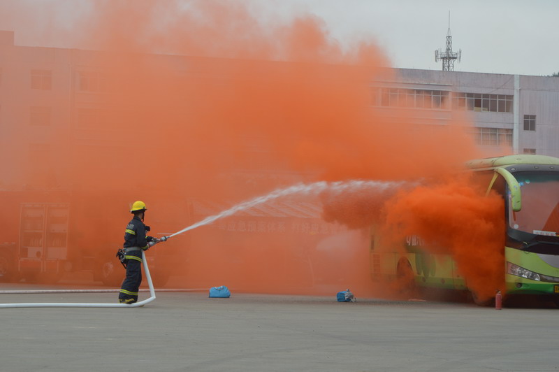 科目一演練場景--消防員對起火車輛進行滅火