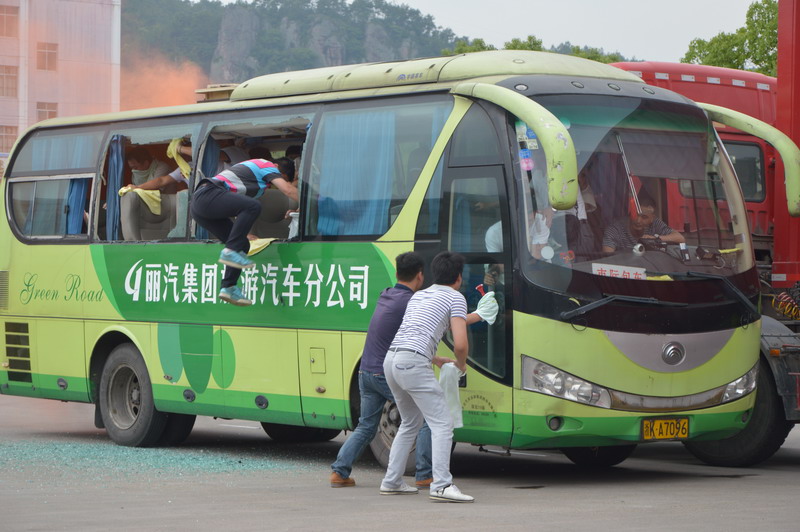 為了全面落實安全生產責任,檢驗評估麗水市突發事件應急救援預案和應急救援體系的適應性、有效性,最大限度地減少各類突發事件的損失和負面影響,6月10日下午,麗水市交通運輸局聯合市道路運輸管理局和麗汽集團在客運西站組織開展了突發事件應急救援演練。此次應急救援演練共分2個科目,分別為:科目一交通事故(客車碰撞后起火燃燒)應急處置和科目二“三防”應急救援車輛調集演練。文首即為突發事件應急救援演練中交通事故應急處置中的一個場景,此次演練的另一個科目模擬市交通運輸局緊急調用麗汽集團應急搶險運力展開。演練中,麗汽集團在接到市交通運輸局應急搶險指令后,迅速啟動了應急預案,并立即調派各單位應急搶險車輛在規定時間內到達指定區域待命。