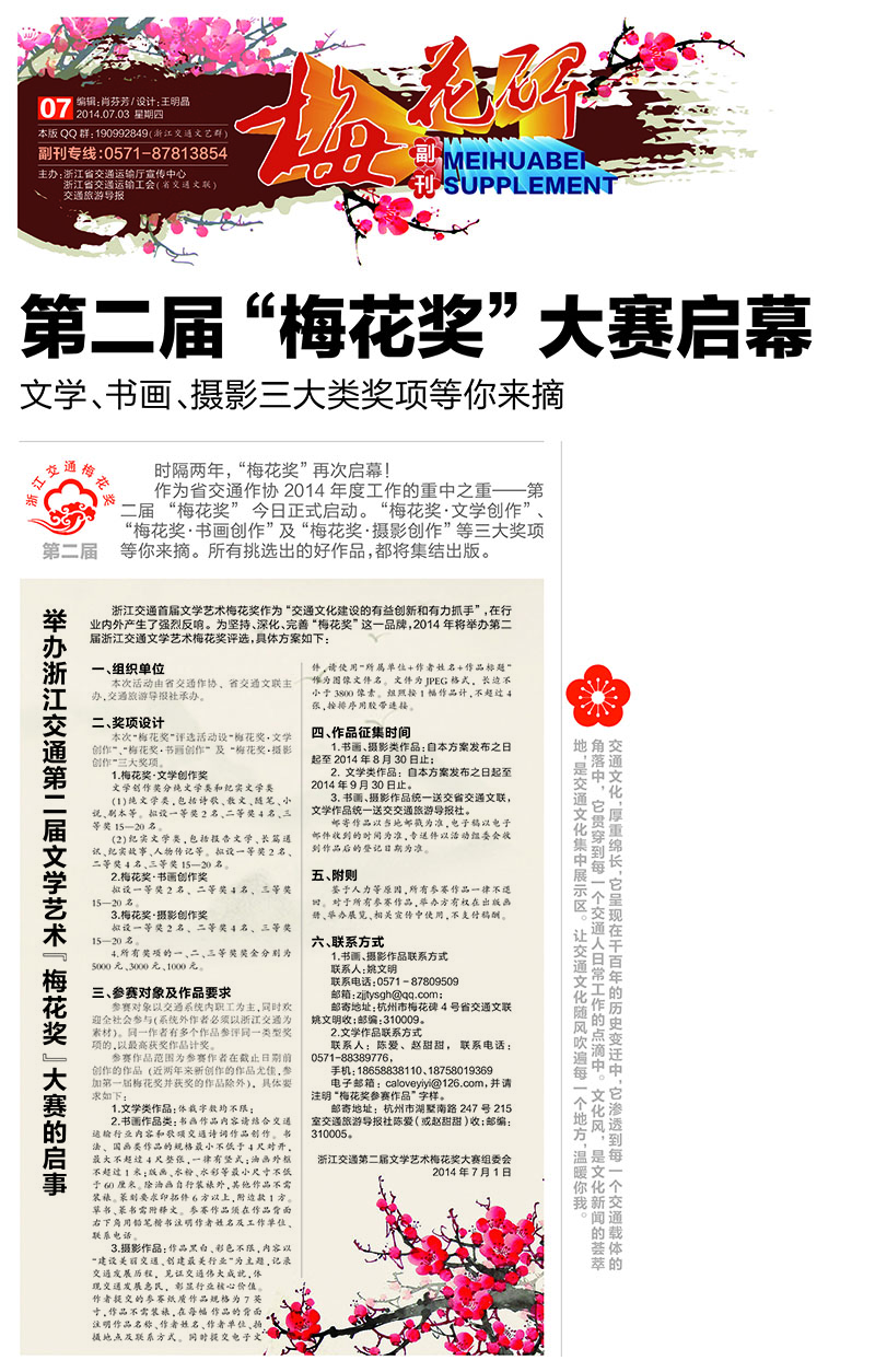 浙江交通第二屆文學藝術“梅花獎”大賽啟事