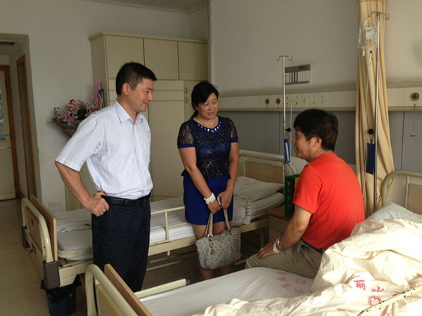 在抗災自救期間,東站業務站長何小勇在老毛病高血壓發病的情況下,還一直堅守崗位,直到所有車輛都撤離站場。他的病情一直牽掛著大家的心,8月26日,集團公司總經理薛和有和工會主席呂麗君專程到醫院看望慰問他,囑咐他安心治病,爭取早日康復。