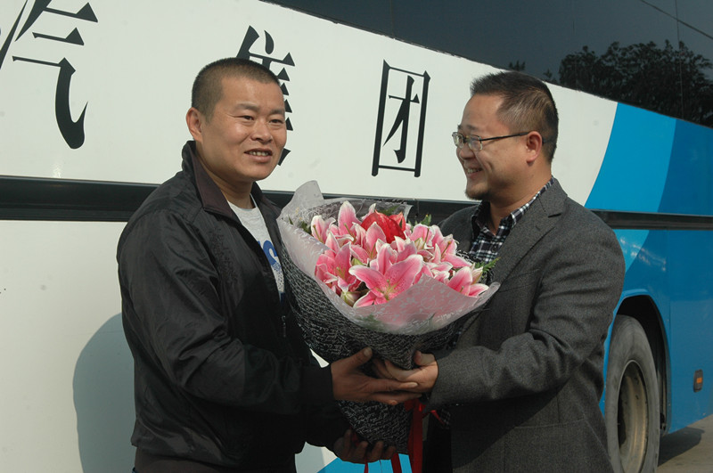 11月4日上午一上班,麗汽集團(tuán)董事長、黨委書記葉茂和工會(huì)主席呂麗君就專程來到客長運(yùn)分公司,看望慰問章雙林師傅。董事長葉茂親自給章雙林師傅遞上鮮花,贊許這位“最美司機(jī)”,稱他是麗汽集團(tuán)1500多名員工學(xué)習(xí)的榜樣。