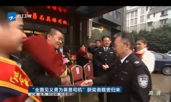 12月24日下午,榮獲第十二屆“昆侖獎”“全國見義勇為英雄司機”的章雙林剛到杭州,就受到了省委常委、公安廳長劉力偉的親切接見。省公安廳專門召開座談會,歡迎英雄司機從北京載譽歸來。