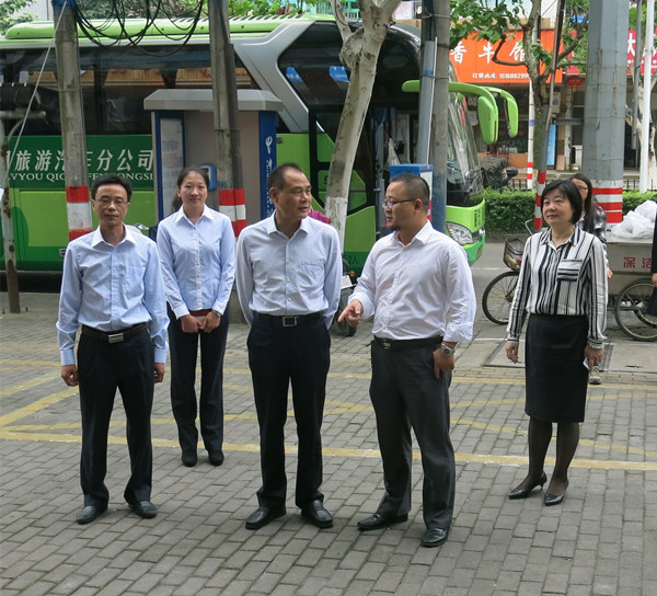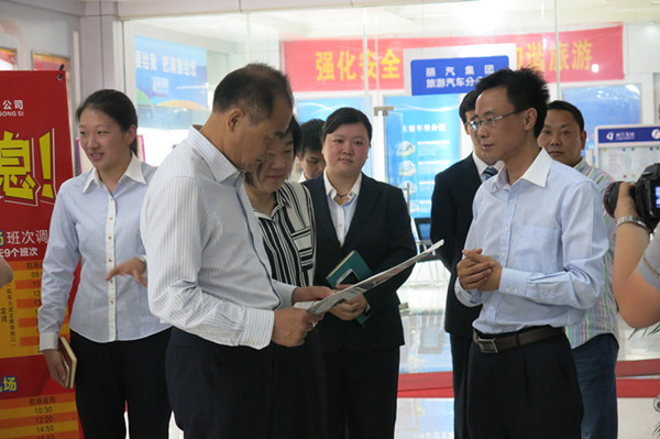 5月8日上午,省旅游局副局長葉建國在市旅游局副局長何麗萍陪同下,來旅游集散中心考察指導旅游安全工作。麗汽集團董事長葉茂、麗汽集團經理助理、旅游集散中心總經理葉劍飛等人陪同。