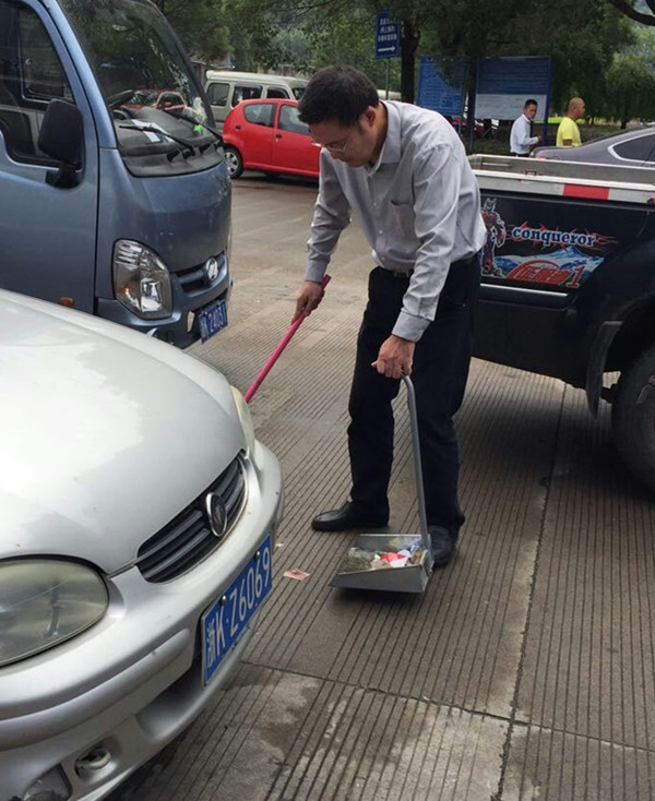 葉偉軍站長(zhǎng)帶頭打掃衛(wèi)生