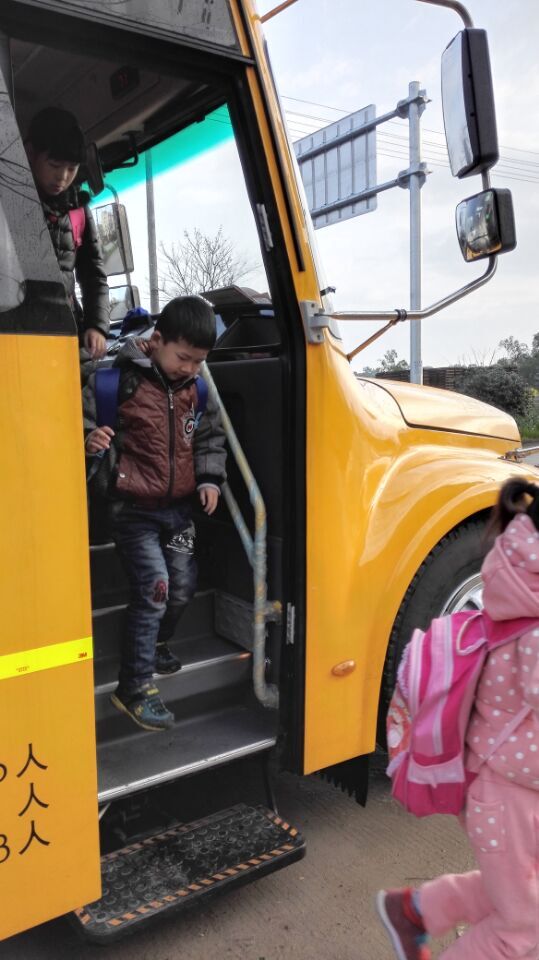 6點45分,校車準時來到下趙村站點,孩子們看到“長鼻子”校車異常興奮,原本安安靜靜的孩子們歡蹦亂跳地沖過來,原本整齊的隊伍一下子開始變得無序。駕駛員一開門,我就趕忙跳下車,攔住后面推搡的孩子,引導他們排隊上車、找好位置坐下。