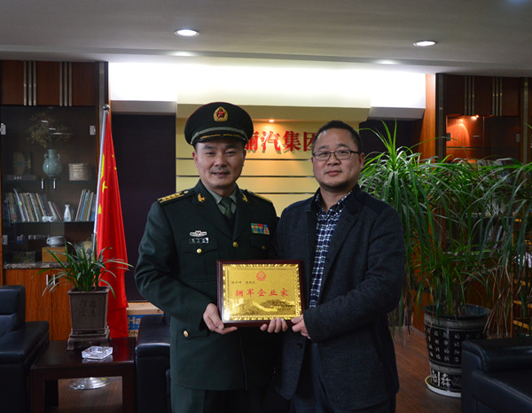 今年7月,集團公司董事長葉茂被省民政廳和省軍區政治部評為“擁軍企業家”。今天(23日)下午,麗水軍分區政治部主任張寶藏一行專程到集團公司,代表省民政廳和省軍區政治部向集團公司董事長葉茂送上“擁軍企業家”牌匾,并對麗汽集團積極安置退伍軍人、烈軍屬等工作表示感謝,對麗汽集團在軍事戰備工作上取得的成績表示肯定,并對麗汽集團今后的人民武裝常態化工作進行了探討。