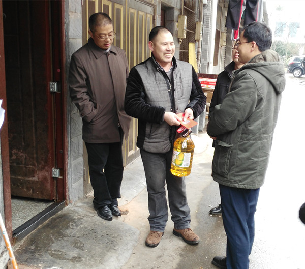 1月27日下午,天正下著小雨,氣溫5-6℃。在這樣的春寒料峭天,市道路運輸管理局副局長何海龍帶領外事出租車公司、大通出租車公司、長運出租車公司單位領導,帶著慰問金、提著食用油冒雨對貧困的駕駛員進行春節慰問,鼓勵大家勇敢戰勝困難,溫暖過春節。