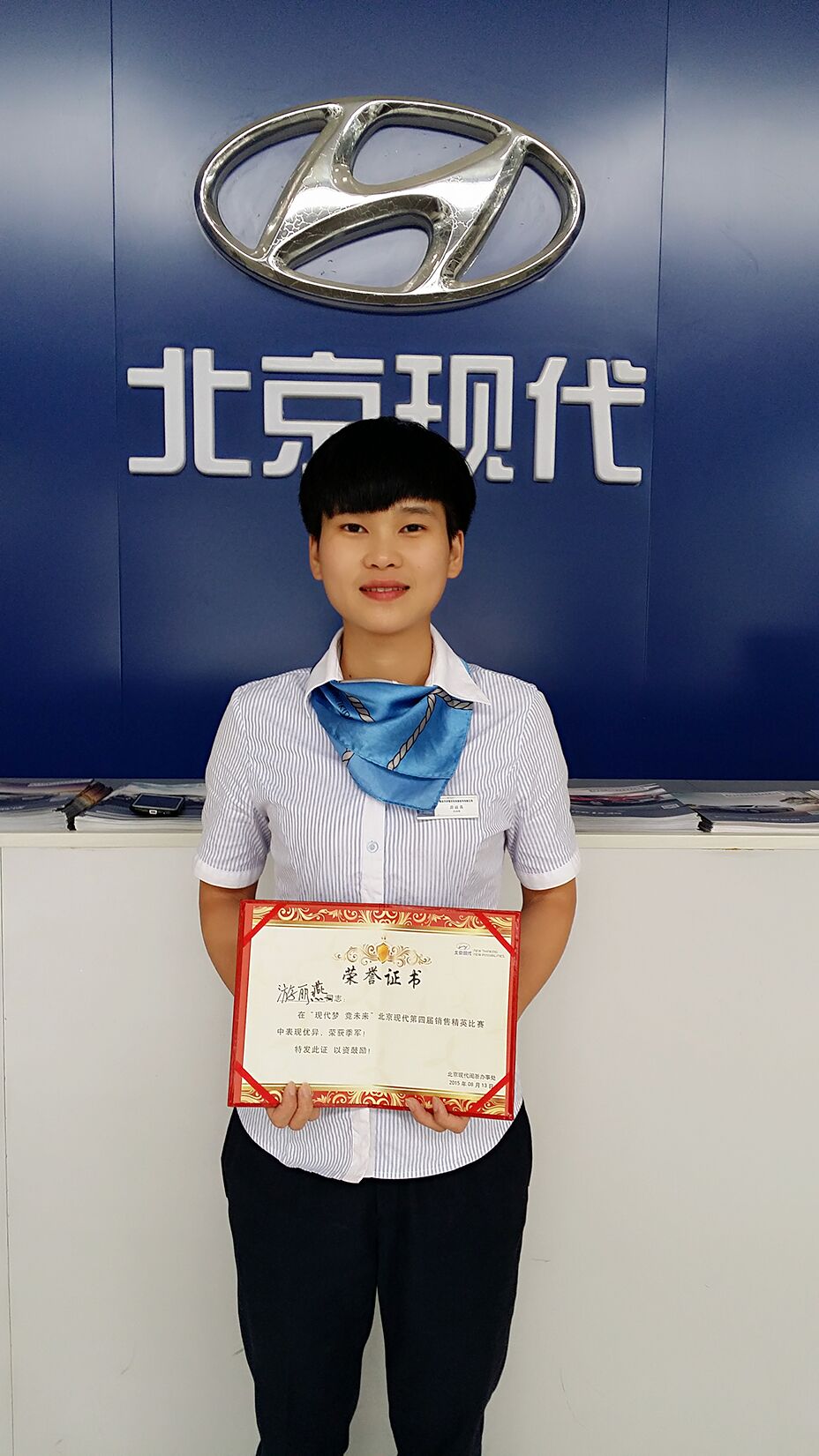 2015年,游麗燕代表伊翔店參加閩浙區銷售比武大賽,她有憑借自己熟練的銷售知識,過五關斬六將,在眾多銷售顧問中脫穎而出,榮獲了“閩浙區銷售比武大賽季軍”的稱號。