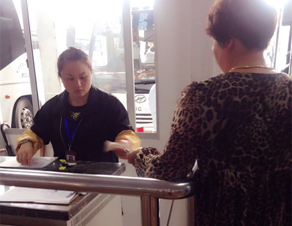 等到20:33分,汽車終于進站。洪麗立即走到檢票臺,熟練地開始拿票、掃描、核對。檢票完,她發現還有一名旅客尚未上車。